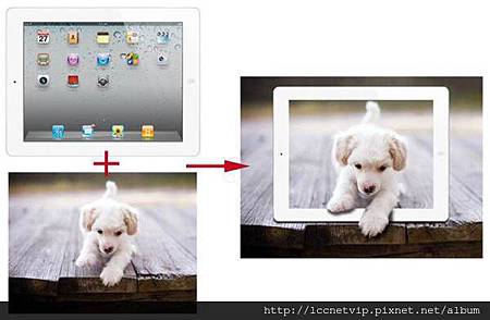 大功告成囉~小狗狗從iPad中跳出來了!這就是「陰影法」在Photoshop的應用之一喔!